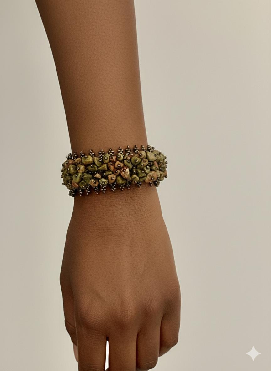 BRACELET EXTENSIBLE EN PIERRE UNAKITE