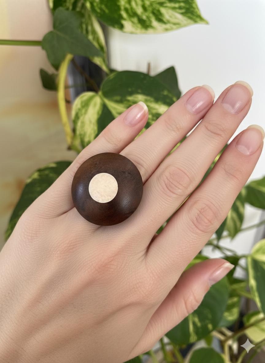 élégante bangue en bois avec une touche d’os sculpté en blanc