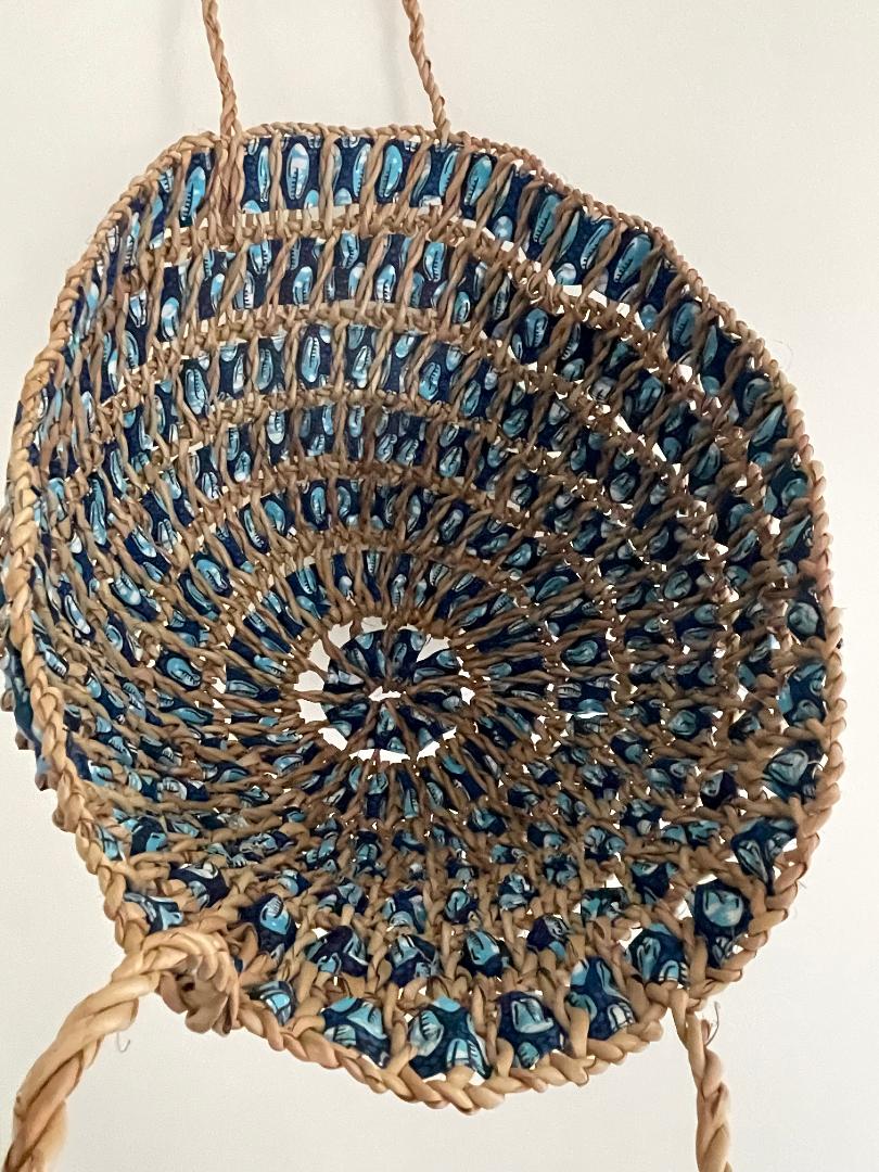 PANIER EN OSIER MELANGE AVEC DU TISSU AFRICAIN WAX FAIT MAIN